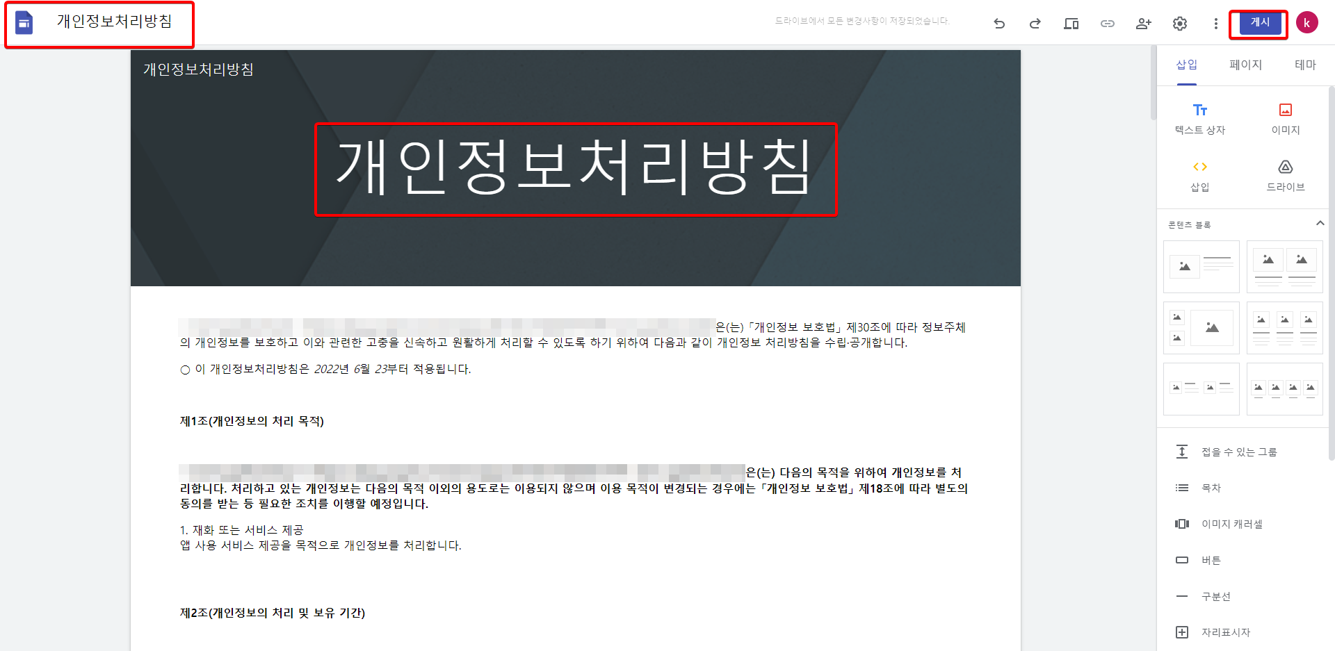 웹 사이트 운영 및 앱 배포를 위해서 개인정보 처리방침을 만들어야 합니다.