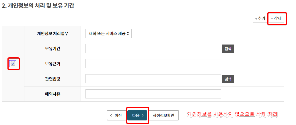 1.4. 개인정보 처리방침 기재사항 작성